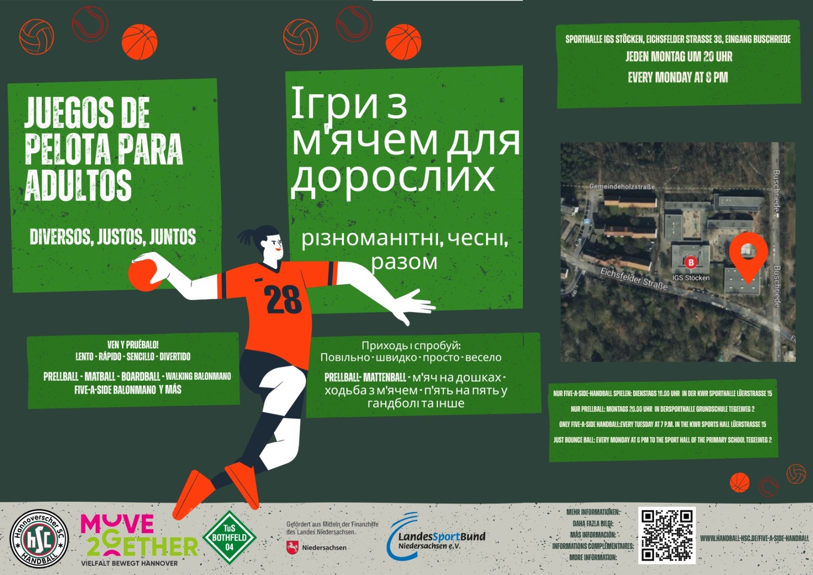 Immer montags treffen wir uns zum gemeinsamen Spielen verschiedener Ballspiele – leicht zu lernen, abwechslungsreich und mit viel Spaß an der Bewegung.
