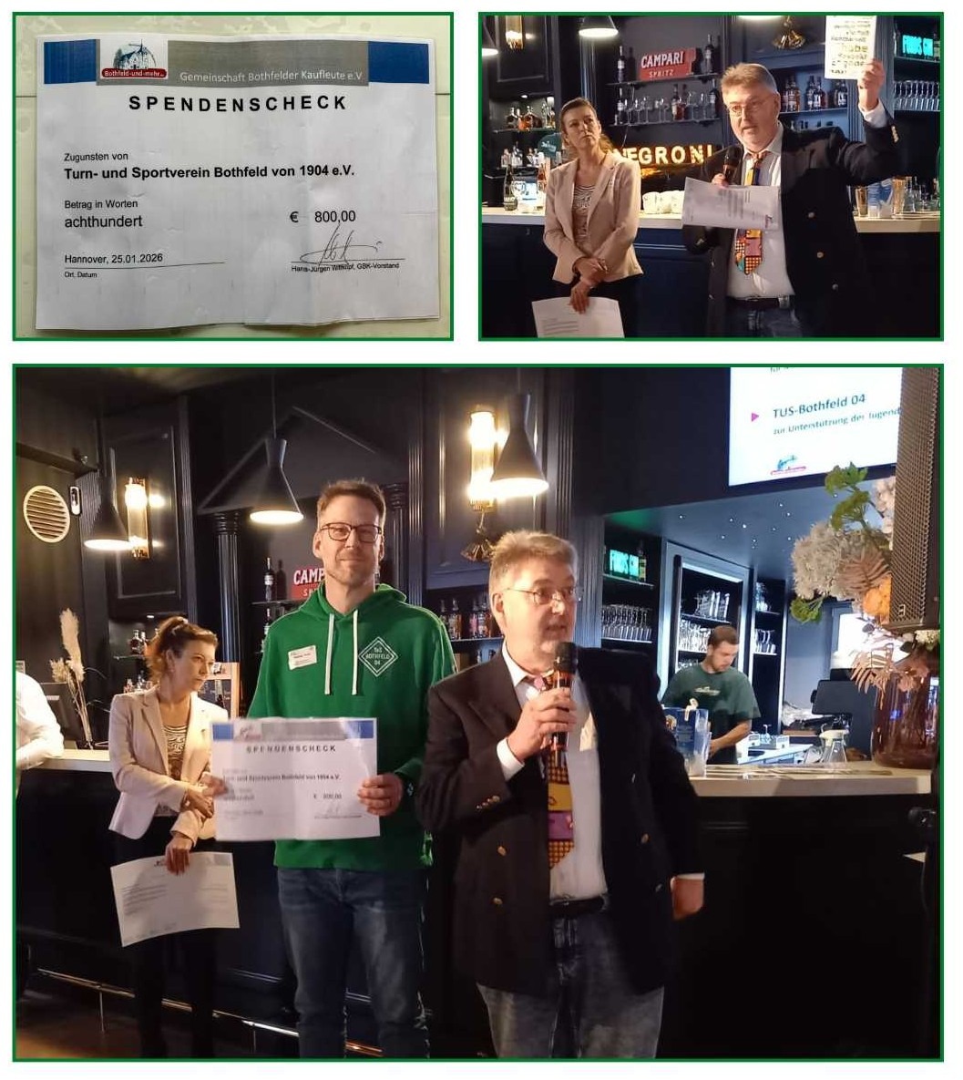 Die Bothfelder Kaufleute überreichten dem Verein eine Spende in Höhe von 800 Euro zur Förderung der Jugendarbeit. Sportwart Thomas Riebe nahm die Spende stellvertretend für den TuS Bothfeld persönlich entgegen.