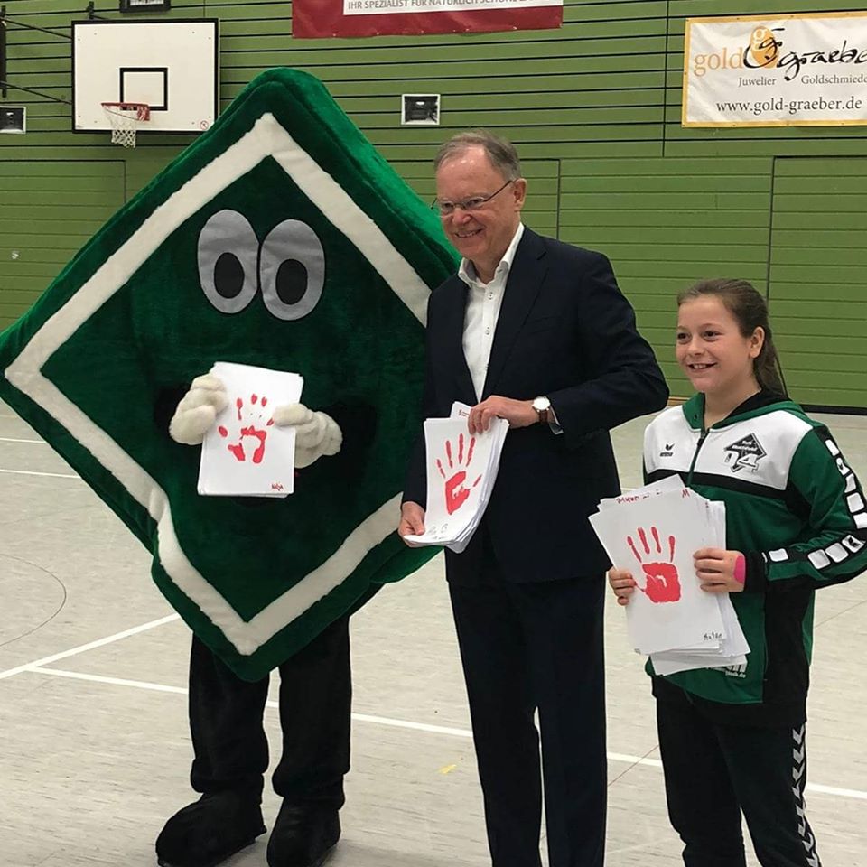 Am Sonntag den 16.2.2020 haben wir die Hände an Ministerpräsident Weil übergeben. Lia hat einen vorgefertigten Text vorgelesen. Herr Ministerpräsident Weil nutzte die Gelegenheit, das soziale Engagement der Handballabteilung hervorzuheben: „Dies sei nicht selbstverständlich für einen Sportverein“.