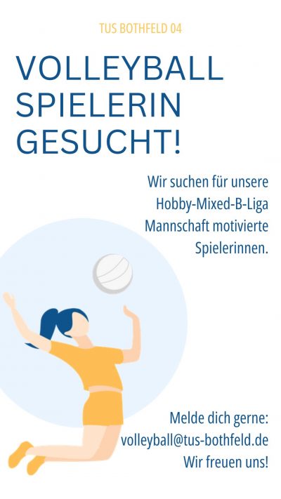 Volleyball mixed V sucht motivierte Spielerinnen für unseren Hobby-B-Liga Spielbetrieb. Wir trainieren Montags im Roderbruch und Mittwochs im Grimsehlweg. Melde dich gern unter E-Mail: volleyball@tus-bothfeld.de
